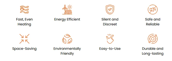 The intelligent thermostat and energy-saving features help you save on heating costs while keeping your environment comfortably heated.